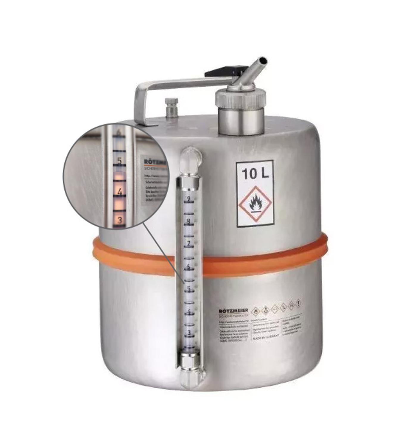 Veiligheidsvat 10 liter met fijndoseerkraan en peilglas