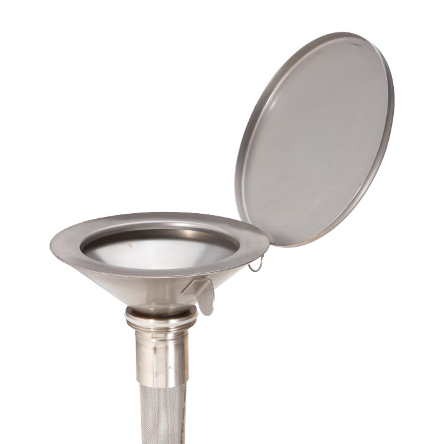 Veiligheidstrechter voor veiligheidsvaten, vlak model met schroefdraad G 2". Trechter van hoogwaardig en chemisch bestendig roestvrij staal, materiaaldikte 0,6 mm. Ongepolijste uitvoering met verwijderbaar vlamscherm. overloop bescherming tegen morsen en deksel verminderd dampen. Aarding via draadpennen (direct contact tussen trechter en veiligheidskan) of extra aardingsaansluiting. Diameter trechter opening 190 mm, diameter vulbuis 45 mm, hoogte 70 mm. Maakt het eenvoudig en veilig vullen van de veiligheidskannen mogelijk.