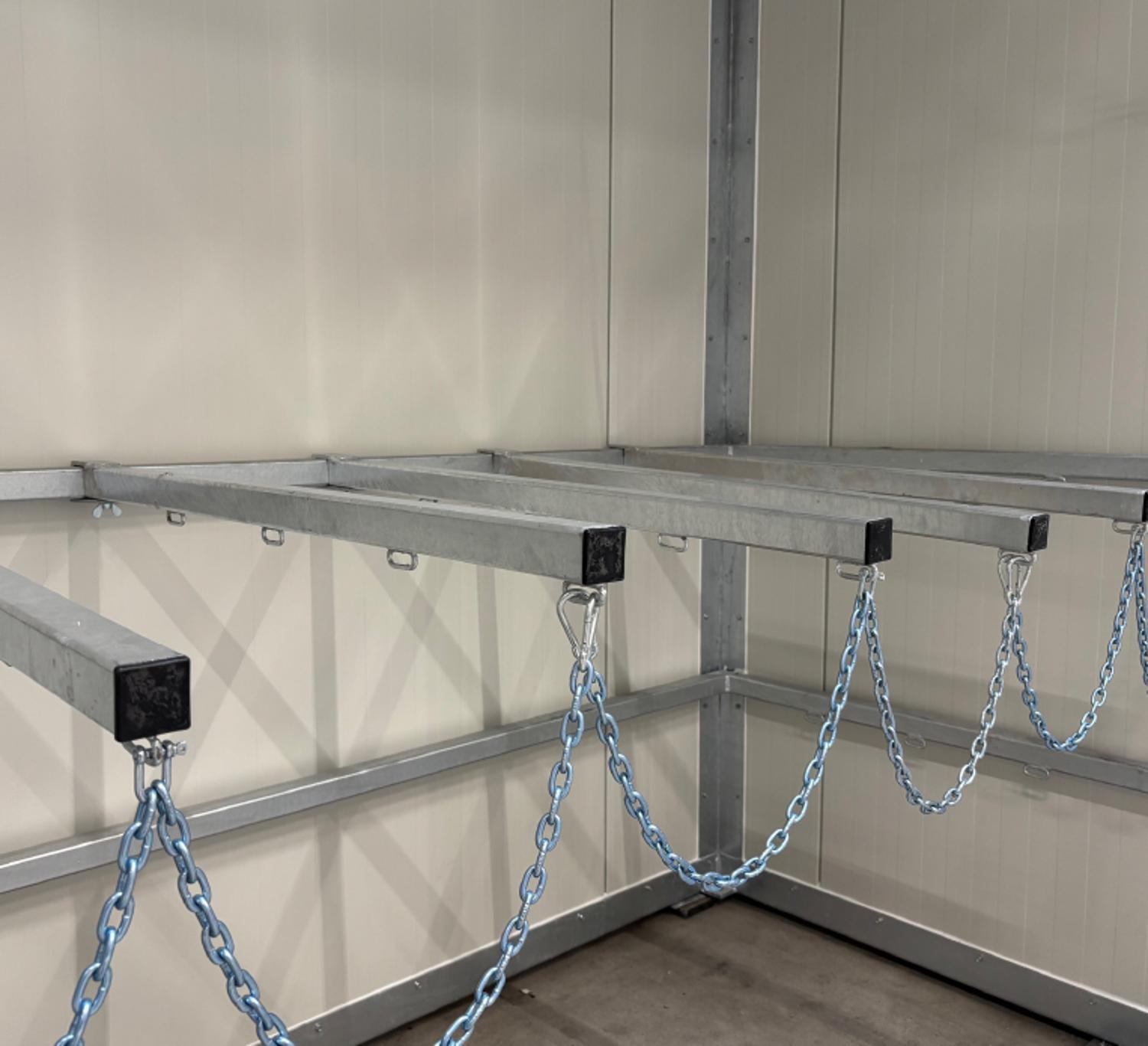 De X90 brandwerende gasflessenberging BGU Pakket Enkel is voorzien van vier hijsogen en een geïntegreerd hijsframe. Deze zijn constructief berekend en voldoen aan de norm NEN-EN 1090. Hierdoor is het brandwerende opslagsysteem op een veilige manier leeg te hijsen of te verplaatsen. Standaard zijn twee aardingspunten aan de buitenzijde van de milieucontainer voorzien.