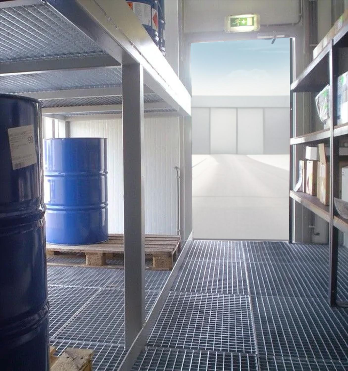 Alle brandwerende pallet containers zijn standaard voorzien van een stalen opvangbak. Bij de X90 brandwerende systeemcontainer BMC-PL Vari Combi 60.35 XL bedraagt het opvangvolume 3.800 liter. De chemicaliënbestendige coating beschermt de opvangbak tegen de inwerking van gelekte gevaarlijke stoffen. De thermisch verzinkte roostervloer heeft een maat van 30x30x3 mm en is eenvoudig uitneembaar om zodoende eventuele lekkages eenvoudig en snel te kunnen reinigen. Tip: bestel hier de absorptiemiddelen