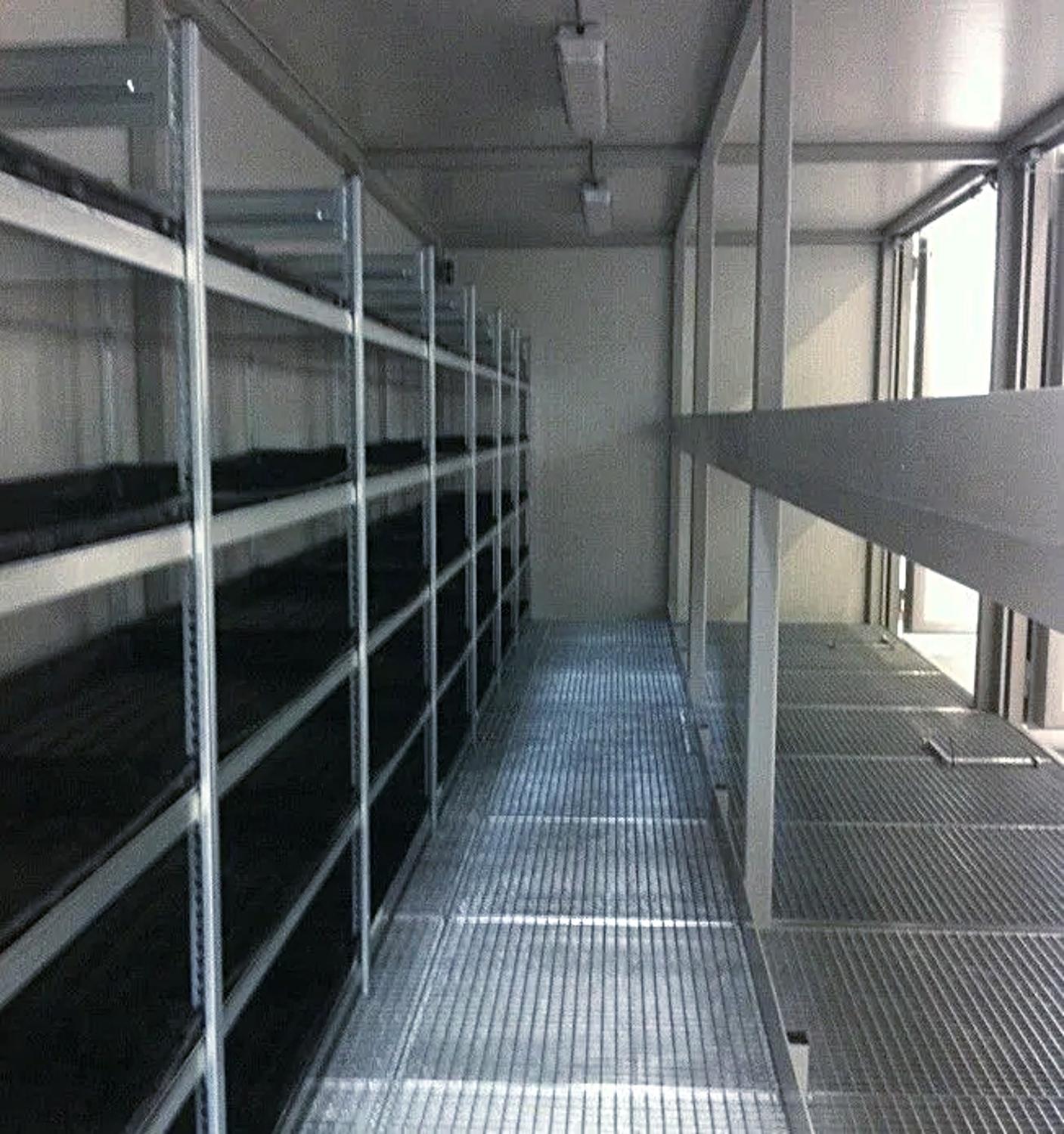 De verzinkt stalen binnen- en buitenwanden zorgen voor zeer hoge corrosiebestendige eigenschappen. Op de buitenwanden is een hoogwaardige plastisolcoating "Colorcoat HPS200 Ultra" in RAL 7038 met laagdikte van maar liefst 200 µm aangebracht, wat zorgt voor een duurzame afwerking. Verder is de binnenzijde voorzien van een helderwitte interieurcoating, welke de binnenzijde een frisse en lichte uitstraling geeft. Daarnaast is het dak speciaal geconstrueerd om te functioneren als drukontlasting. Ook het dak heeft een brandwerendheid van 90 minuten.